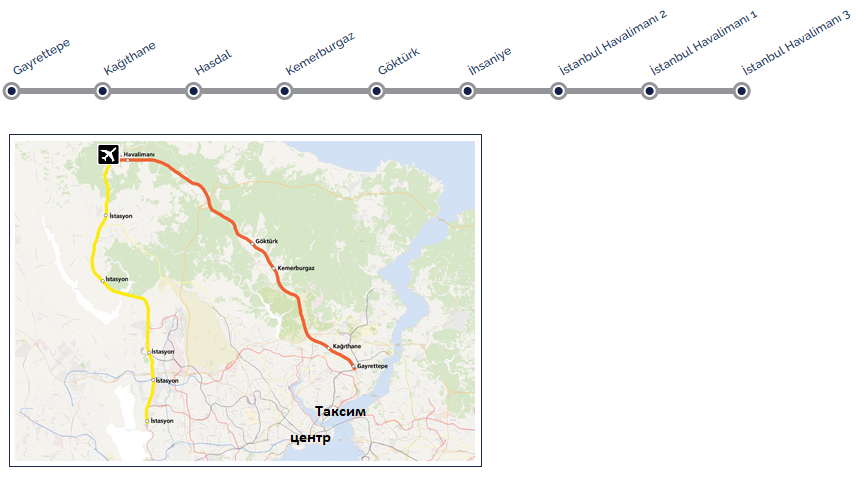 Gayrettepe → Kagithane → Kemerburgaz → Göktürk → Insaniye → Istanbul Havalımanı 1 → Istanbul Havalımanı 2 → Istanbul Havalımanı 3